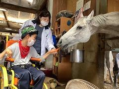 また、去年までは怖がって馬に近づけなかった生徒が教員と一緒にニンジンをあげる姿や、「怖い」と言いながらも