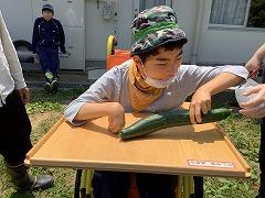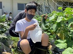 キュウリを収穫するときには「葉っぱがチクチクしていやや」や「このキュウリとげはえとる」と採れたてのキュウリやキュウリの茎や葉にとげがあることに驚いている生徒もいました。