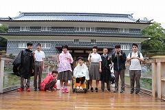 事前学習で学んだ海鼠壁(なまこかべ)の目地が黒漆喰(くろしっくい)で仕上げられている点や色紙短冊積石垣(しきしたんざくつみいしがき)をしっかりと確認してきました。