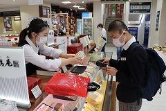 昼食の後は、石川県観光物産館に家族へのお土産を買いに行きました。たくさんのお土産があり、どれにしようか迷いながらも、支払いはしっかりと自分たちで行いました。