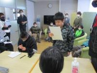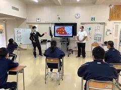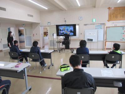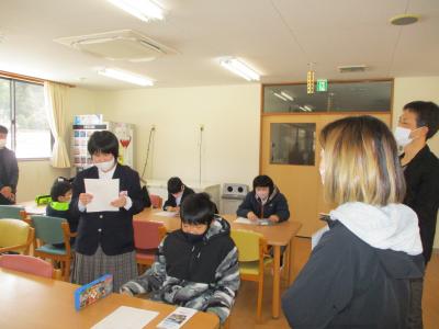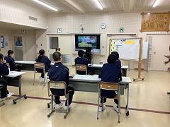 橋立海青学園8年生との学校間交流がありました。最初の自己紹介では、どちらの生徒も緊張している様子でしたが、
