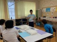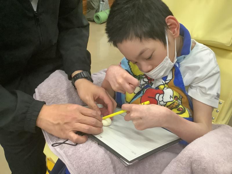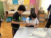 体験しました。「こうやってするんだよ」と声をかけたり、「使う?」と計りを持ってきたりと、上手に