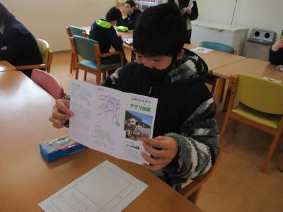 次の総合の授業では、撮影した写真に説明文を付け、ガイドマップを作成しました。
