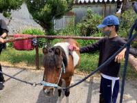 馬事公苑にて、馬のブラシ掛け、ボロ取り、ニンジンの餌やり、乗馬体験を行いました。
