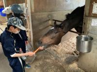 ニンジンの餌やり、乗馬体験を行いました。去年、一昨年の積み重ねや、事前学習での学びもあり、作業をスムーズに