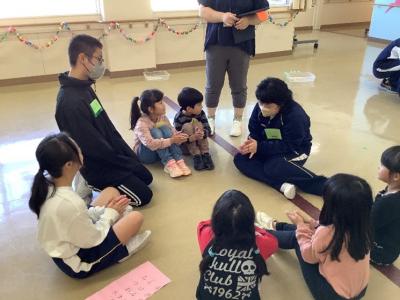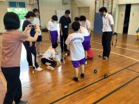 すぐに打ち解け「フルーツバスケット」や「お玉リレー」「キックベース」などで盛り上がりました。