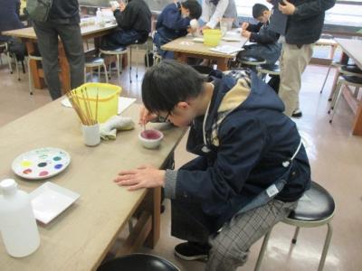 集中して丁寧に活動に取り組んだ生徒たち、色をつけ終えると満足そうな様子が見られました。