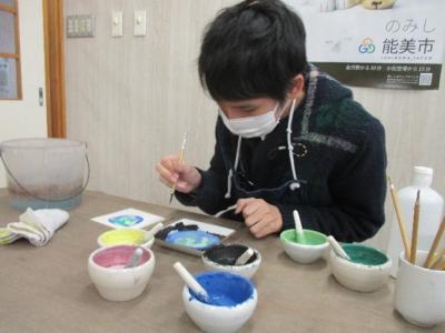 事前に描いていた下絵に当日は九谷五彩で色をつける体験をしました。