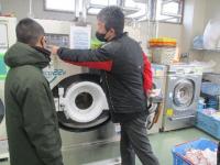 進路学習の一環として、社会福祉法人南陽園「夢ファクトリーえん」でリネン工場の仕事を見学しました。