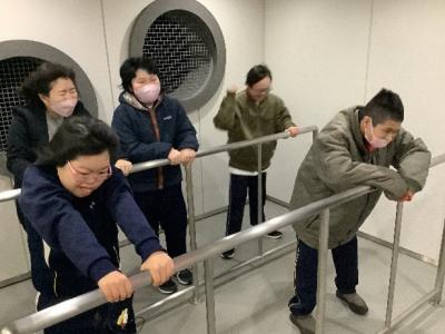 最後に、金沢港クルーズターミナルに行きました。展望デッキから海を眺めたり、操作シミュレーターで船長になりきったり、レストランで眺望を楽しみながらソフトクリームを食べたりと、思い思いに楽しみました。