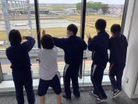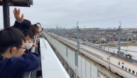 春の遠足はトレインパーク白山に行ってきました。今年3月にオープンしたばかりの新しい施設で、学びと体感エリアでは北陸新幹線に使われている部品の展示や運転シミュレータ等があり、新幹線について学んだり体験したりすることができました。展望室では走行する新幹線を間近で見ることができ、新幹線が通過すると歓声が上がりました。見学や体験を通し、友達と一緒に新幹線の魅力を存分に味わうことができました。