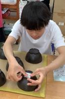 「もぐ」ではシール貼りの作業を行い、お椀の裏に丁寧にシールを貼りました。「えん」ではタオルたたみの作業を