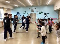 その後は、よさこいソーラン「踊れ日本海」を中学部生徒が披露し、スワトン保育園のみなさんと一緒に踊りました。