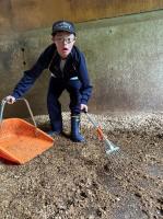 馬の学習では、乗馬体験やボロとり(馬の厩舎の清掃)、ブラシがけの体験をしました。