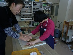 粘土でお皿やコップ、花瓶などを作っています。