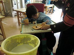 回収した牛乳パックから、カレンダ-を作っています。