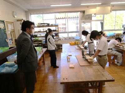授業見学では木工・窯業・園芸ファームの作業学習の様子を見ていただきました。