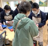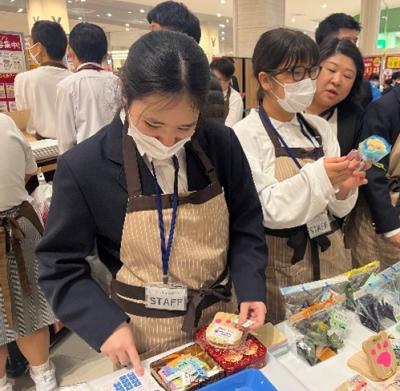 したり質問にも丁寧に答えたり、お店の入り口でチラシを配ったりと生徒たちは一生懸命に活動できました。