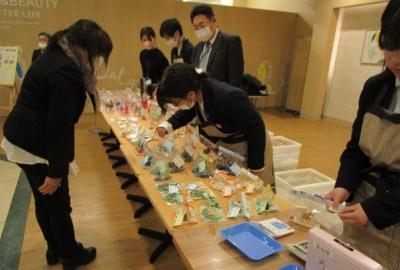 お客様に気持ちよく作業製品を見てもらえるよう向きを揃えて並べたりして、色々な所に気を配り生徒同士協力し