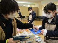 幸徳園では、箱折りや菓子作りなどの様子を見学させていただきました。質問タイムでは、卒業生から、昼食や休み時間の過ごし方、仕事の楽しさについて聞くことができました。