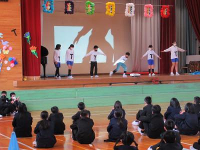 たくさんお世話になった6年生に合奏と歌と踊りのプレゼント