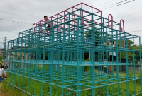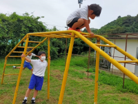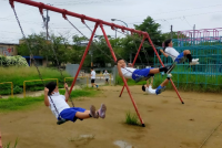 特に小運動場は、たくさんの遊具があり、子ども達には人気のようです。鉄棒や雲底、ブランコやジャングルジム、中央では鬼ごっこをして楽しそうに遊んでいました。