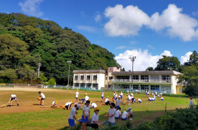 9月6日、6年生が全員でグラウンドの草むしりをしてくれました。コロナや天候の影響で、「愛校作業」ができない中、芝刈り機や草払い機などで少しずつ作業を進めてはいるものの、雑草の勢いは止まりません。