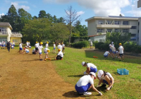大勢で取りかかってくれたおかげで、たくさんの刈り取った草がきれいになりました。自分たちの学校を自分たちできれいにするのは当然のことかもしれませんが、勉強だけでは身につけることができないこのような活動を、ぜひ続けていきたいものです。