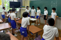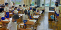 今日の様子は、みんなマスクをしっかりと付け、手洗いも一生懸命に行っていました。2学期スタートのしばらくは、特に注意深く行っていきますので、どうぞご協力をお願いいたします。なお、ご家族に発熱等の症状がありましたら、遠慮せずお休み下さい。(欠席とはなりません)