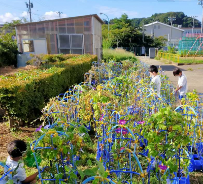 1年生が育てている朝顔も、一気にたくさん咲くようになりました。水やりをしている子ども達も、とっても嬉しそうです。