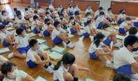 あと1週間で、1年生にとっては初めての「夏休み」になります。40日近く、ご家庭で過ごすことになりますが、誰一人事件や事故にあわないよう、今日の交通安全教室で学んだことを、役立てて欲しいと思います。