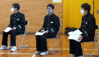 中学校での生活や部活動の話、体育祭のビデオや勉強の仕方など、たくさんのことを教えてくれ、6年生は真剣に話を聞きメモをとっていました。
