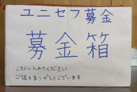 企画委員会の人たちは、朝早く募金箱を持って活動してくれました。お疲れ様でした。世界中の子ども達の「命を守る」活動に、少しでも役立つことが出来ればいいなあと願います。