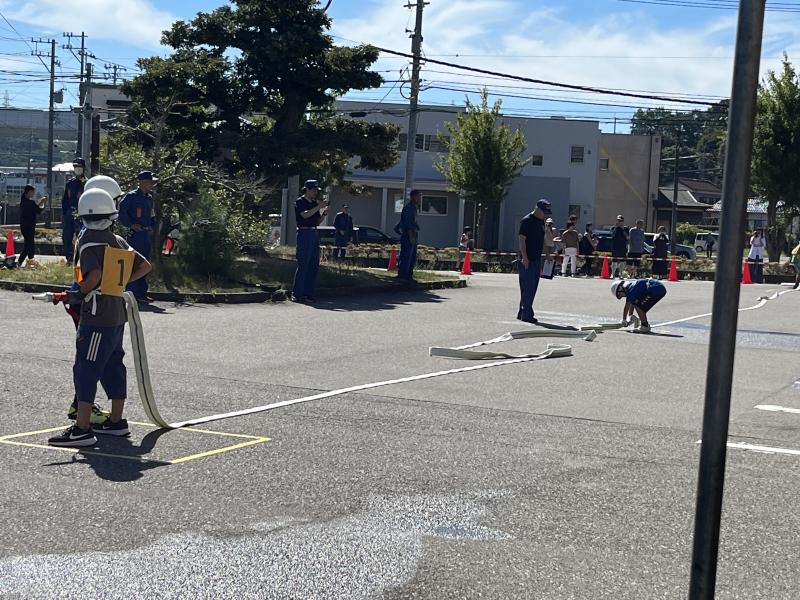 26日(土)の午前9時から、9月3日(日)に行われる加賀市消火栓放水大会に向けての練習がありました。
