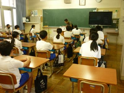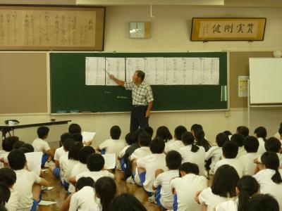 10月10日(火)市内の5・6年生が一堂に会して披露する予定の「千人謡」に向けて、今日の5限目に講師の先生をお招きしての練習会をしました。