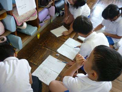 運動会に向けて、応援練習がスタートしました。なんと、赤団の応援担当者が、一人で低学年の教室に行き、見本を見せながら練習を仕切っている姿に感動しました。