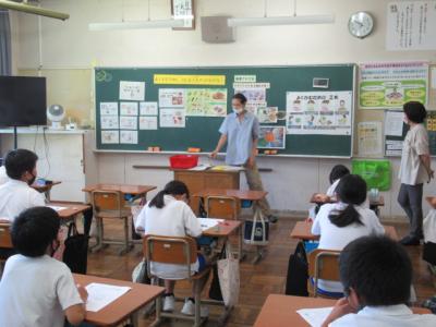 2年生の道徳の授業に、水田丸で専業農家を営んでおられる下出さんがゲストティーチャーとして来てくださいました。道徳のお話は次のようなものです。