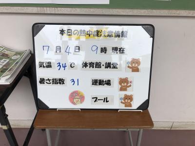学校ではWBGTという数値を使って外遊びや体育館、講堂での遊びの安全を図っています。また最近ではプールも熱中症の危険があるといわれており、先日、本校においても午後の水泳授業を中止しました。児童の命を守るために本校では次のような基準で活動の可否を判断しています。一度ご覧になっておいてください。↓