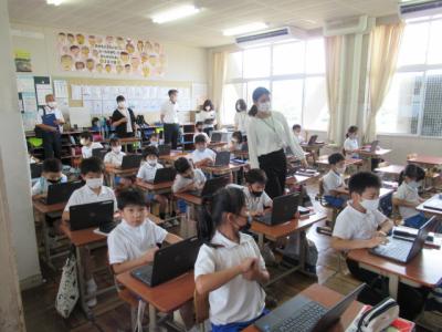明日は1学期の終業式です。今日、子どもたちは3時間目まで勉強して下校します。1学期の勉強はほとんど終わっているようで、学校を見回っていると、ロッカーの片付けをしていたり、夏休みのきまりについて話を聞いていたりと、普段の学習とは違う勉強をしている学級が多く見受けられました。2年生は講堂でお楽しみ会をしていました。楽しそうな声が学校中に響いていました。