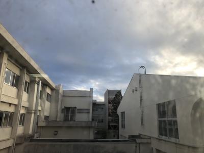 今日はマラソン大会t峰実です。朝の天気予報は「8時過ぎに雨が上がる。」でした。何とか実施できそうだと、保護者の皆様にメールを出したのですが、なかなか雨が上がりません。そのうち天気予報も雨の時間帯が伸びて「11時ころまで雨が続く」に変わってしまいました。やむなく延期を決定しましたが、その後、20分ほどたつと西の方には青空が見えてきました。なんとも恨めしい青空でした。