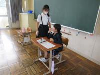 ブラスバンドの楽器体験がありました。5,6年生の先輩が4年生に優しく楽器の演奏の方法を教えていました。会議で少し遅れて行ったので一部しか見られませんでしたが、4年生は実際にティンパニや大太鼓をたたいたり、マウスピースを吹いたりして楽しそうでした(手ぶくろと消毒でコロナ対策もしっかりしていました)。6月からは新しいメンバーも加えて、新曲の連取も始まるようです。今年もブラスバンドの活躍が楽しみですね。