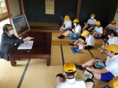 「今の6年教室は、昔大聖寺のお殿様が住んでいたところにある。」「低学年玄関の前の橋は、お殿様の通る道だった。」「錦城山には、加賀市の中でも有数な自然林が残されている。」「北前船と呼ばれるには、3つの条件がある。」など、一緒に回っていても、とても興味深いお話を聞くことが出来ました。講師をしていただいた、野田先生、見附先生、山田教育長、お忙しい中、本当にありがとうございました。
