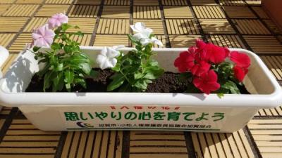 玄関にはきれいなプランターの花や、あいさつポスターなどが並んでいます。自分たちの力で、素晴らしい学校していこうとする心意気が感じられました。さすが上級生です。