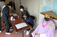 「気配切り」や「アスレチック」「爆弾ゲーム」「水中コイン」など、16ものお店ができあがりました。ルール説明と運営は、それぞれ企画したクラスの人たちが行います。タブレットを使ったり、大型モニターを使ったり、はたまたホワイトボードで説明したりと、いろいろ工夫を凝らし、自分たちのお店に呼び込みをしていました。