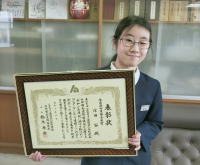 加賀市代表として県に出品し「優良賞」となりました。おめでとうございます。全校集会での表彰式を行えなかったので、校長室にて表彰式を行いました。中学校に進んでも、また素晴らしい感想文を書いてくださいね。活躍を期待しています。