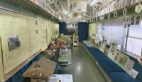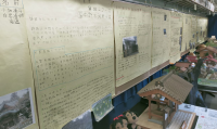 電車の中には、6年生のまとめた模造紙がいっぱいに掲示されています。歴町センターの毛利理事長や、瀬戸事務局長も大変喜んでくださいました。
