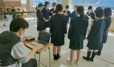 3学期もいろいろなことがありました。音楽室をのぞいてみると、5年生がパートごとに分かれて、歌の練習をしていました。「何を練習しているの?」と聞いてみたら、クラスの歌を作っているとのことでした。