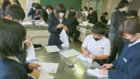 先日、中越同窓会長様から、学校正面の大時計をご寄付いただいたことを受け、企画委員のみんながお礼の色紙を書きました。