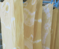 先日5年生がタマネギの皮で、「タマネギ染め」をしていました。皮にはそんなに色がついていないのに、本当に染まるのかなあと疑問に思っていましたが、出来上がった作品を見てびっくりしました。とってもきれいに染め上がっていました。