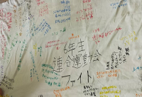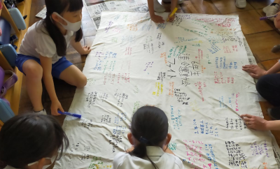 5年生も、大会前日に行う予定であった「壮行会」に向けて、実行委員を中心に一生懸命に頑張っていました。他の学年も、応援幕に一人一人がメッセージを綴っていました。